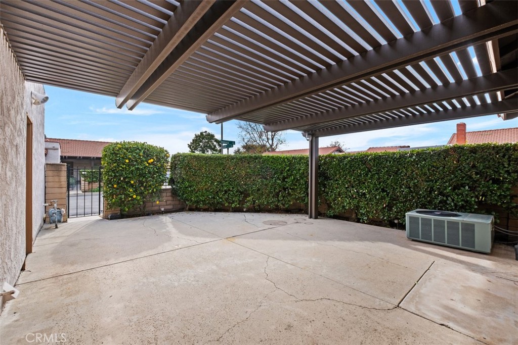 Exquisite single level end unit in desirable Corte Vista Villa Community with only 56 homes, is ideally located on a corner lot with an enclosed private courtyard. Luxury vinyl plank floors are laid throughout this modern home. An abundance of windows allow for a tremendous amount of natural lighting. The elegant living room features vaulted ceilings, recessed lighting, ceiling fan, built-in display glass cabinet with interior lights, crackling stylish stone fireplace and attractive window plantation shutters. Open concept showcases the recently upgraded contemporary kitchen boasting a plethora of quartz counter top space, cabinetry with underneath LED lighting and self closing drawers, sleek kitchen island, touch sink faucet component, built-in microwave, double ovens, recessed lighting, five burner stove top, appliance "garage lift" and beautiful glass tile backsplash. The spacious original dining room extends to the modern kitchen with built in glass cabinetry, quartz counter top and leads to the private enclosed court yard. The fourth bedroom has been converted to the existing separate dining room but can easily be converted back to a bedroom. Second bedroom has been ideally converted into a modern office with built-in desktop, stylish cabinetry and drawers. The spacious primary bedroom accommodates beautiful furnishing and has access through a double pane sliding door to the secluded enclosed private courtyard. Immaculate upgraded large primary bathroom features an enclosed glass walk in shower, mirrored double door closet, vinyl plank flooring and newer sink vanity with elegant quartz counter top. Two car enclosed attached garage features interior access, roll up garage door, automatic garage door opener and laundry hook ups. Convenient access to grocery, restaurants, gas stations, car wash and more, less than 5 minute walk/ride out your front door. To top it all off, this amazing home resides within the boundaries of the coveted Placentia Yorba Linda Unified School District.